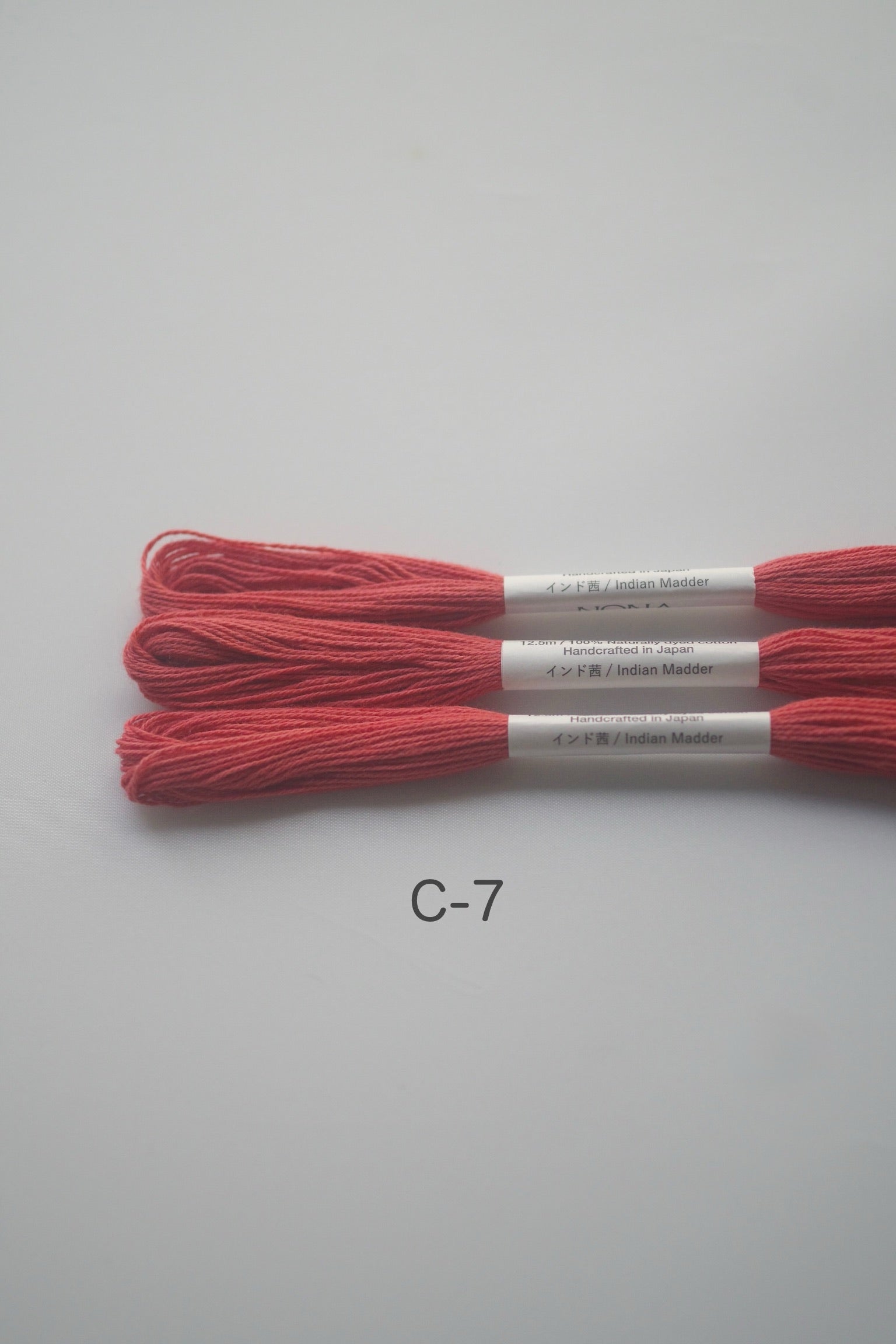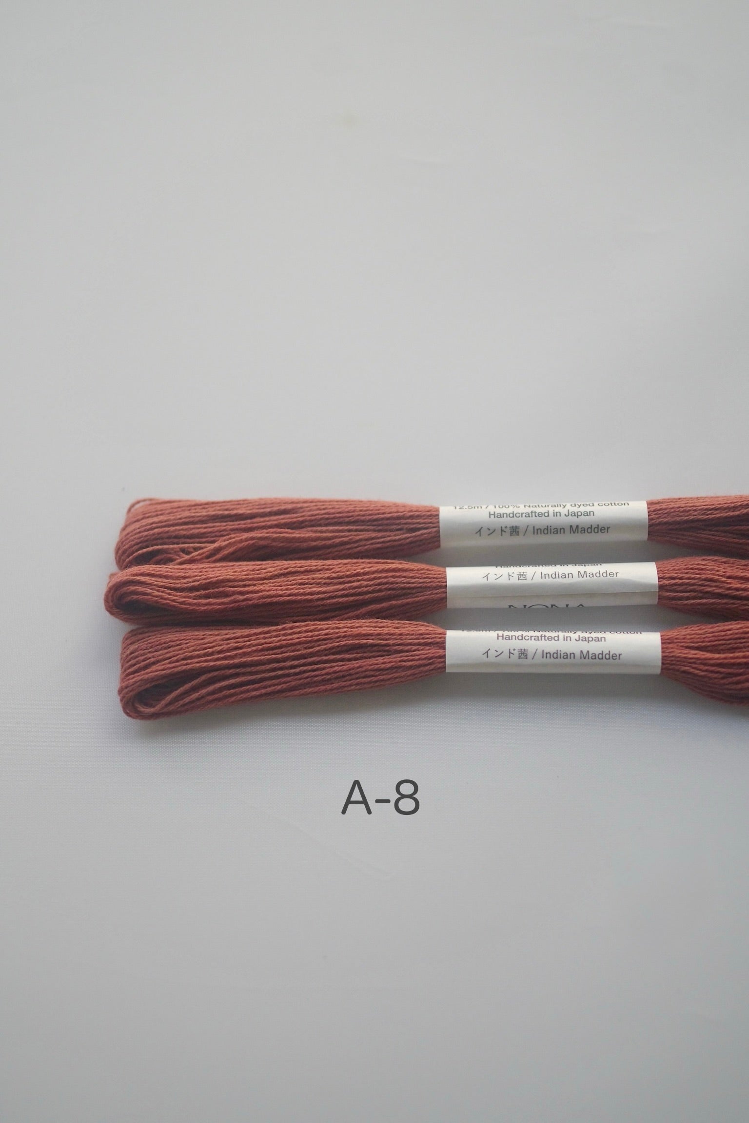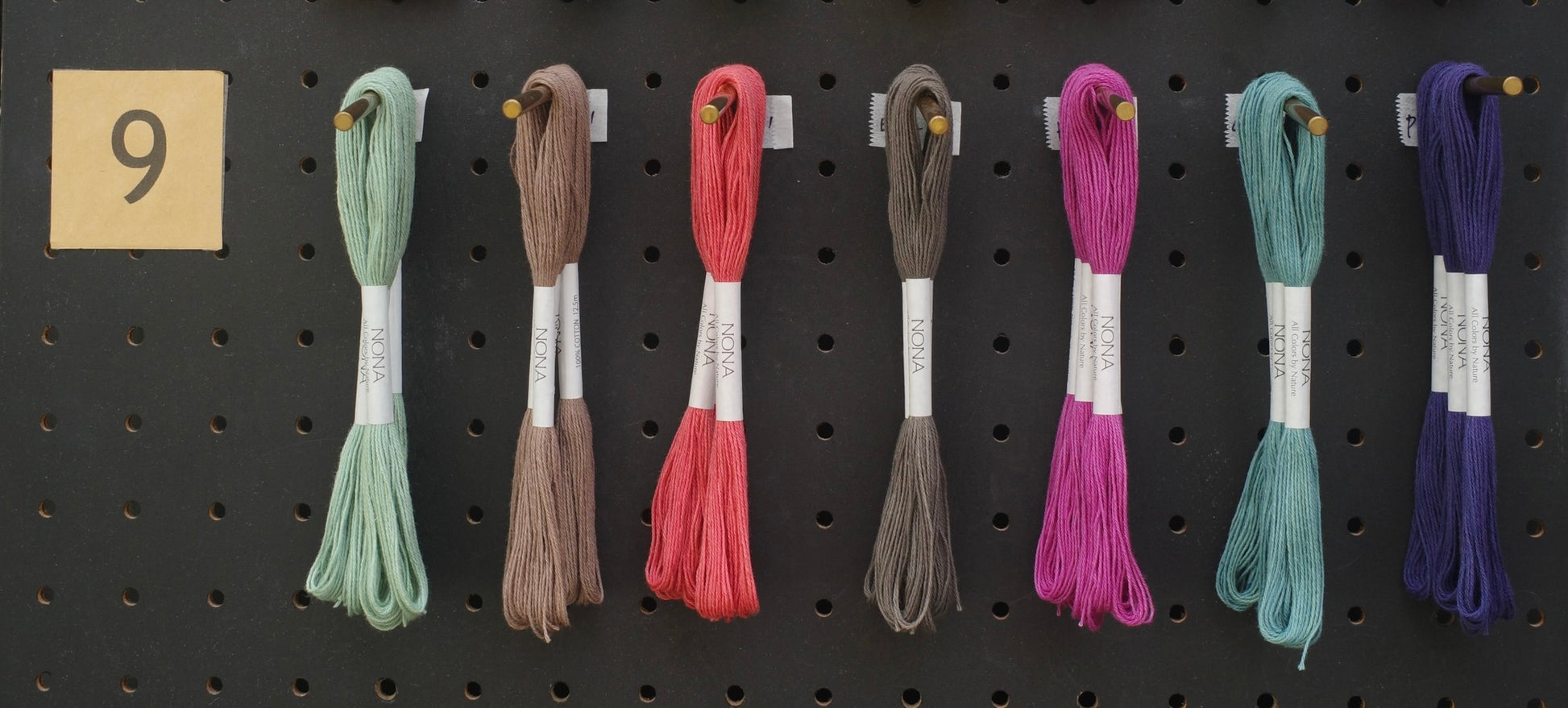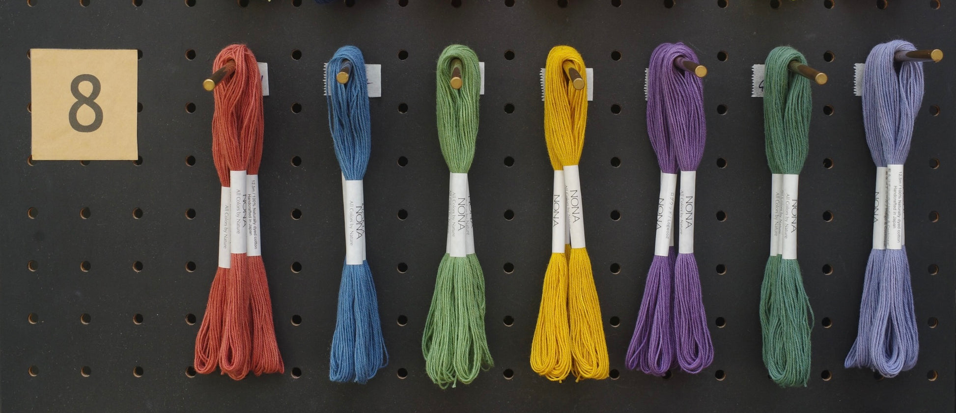 通常のNONA糸のラベルには、染色に使用した植物の名前が刻印されています。