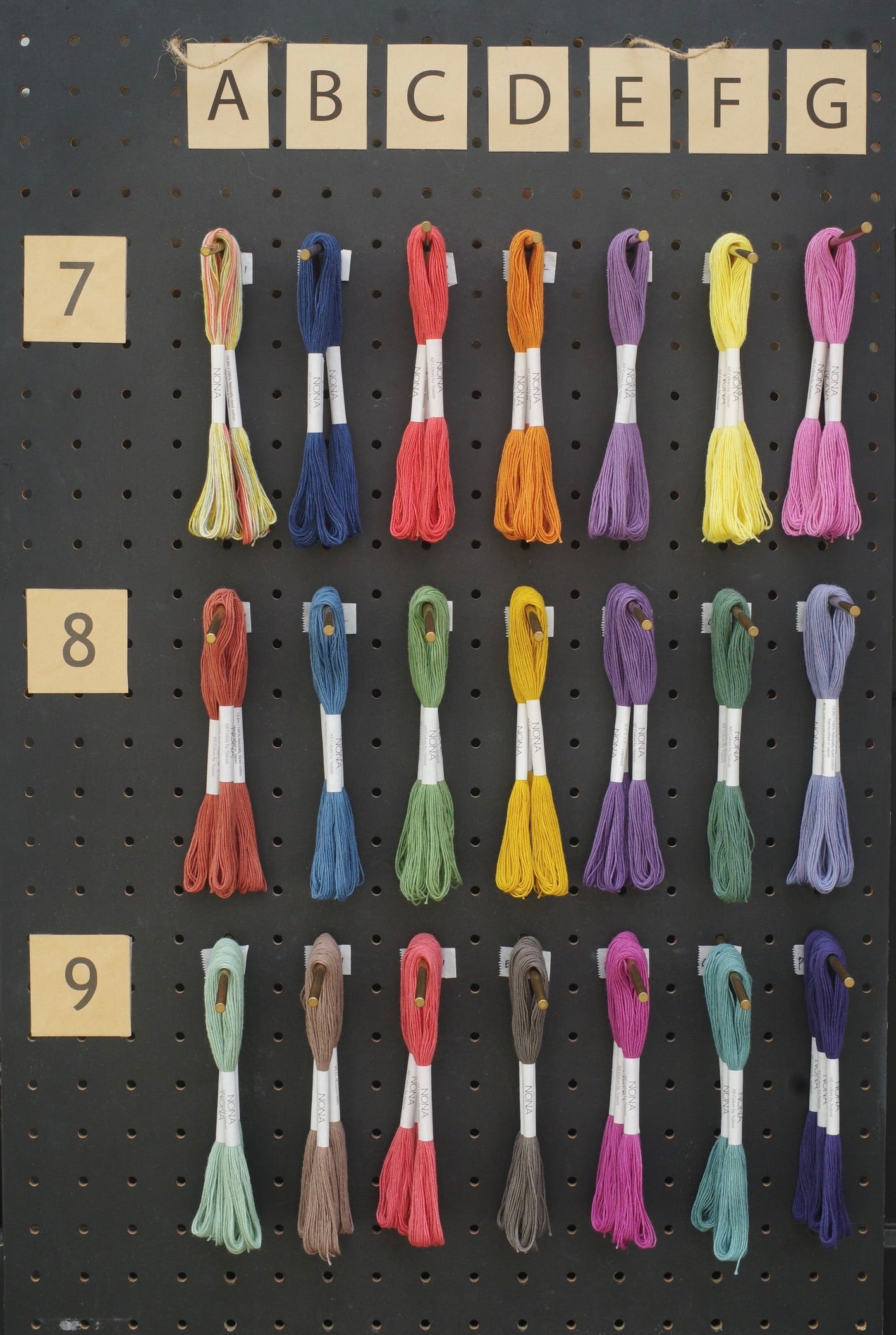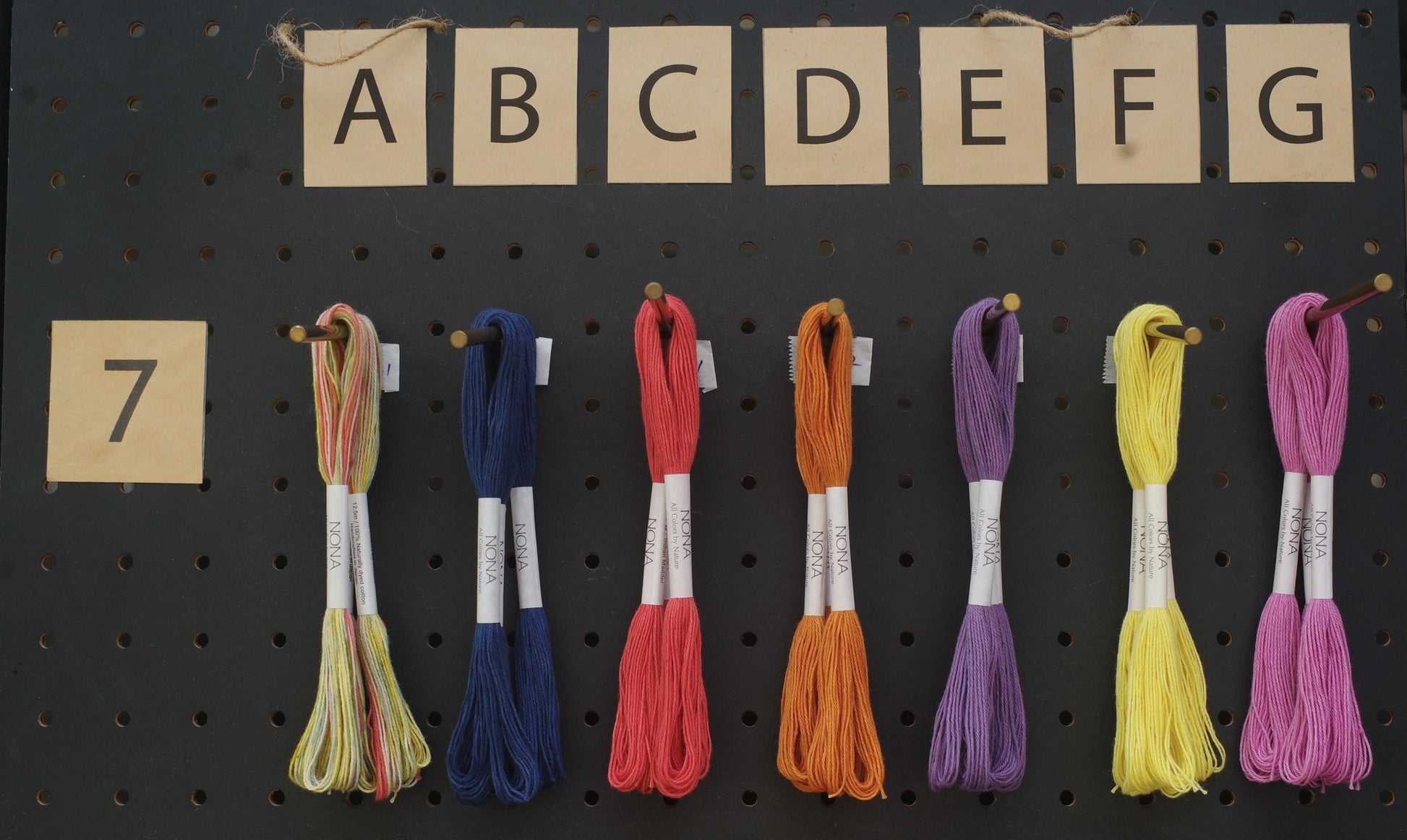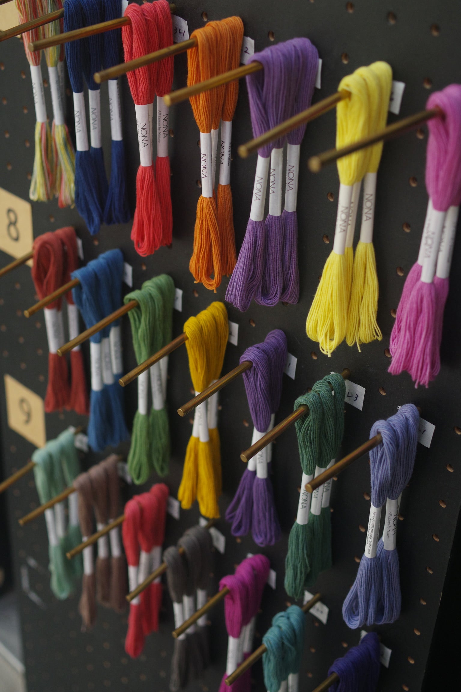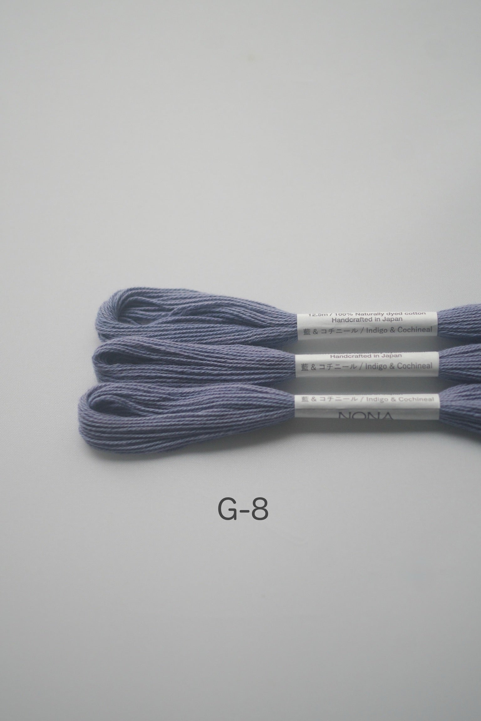 通常のNONA糸のラベルには、染色に使用した植物の名前が刻印されています。